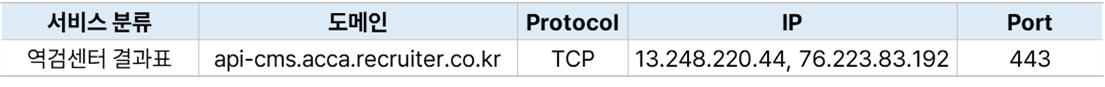 역검센터 결과표가 보이지 않는다면, IP 추가 개방 요청드립니다.