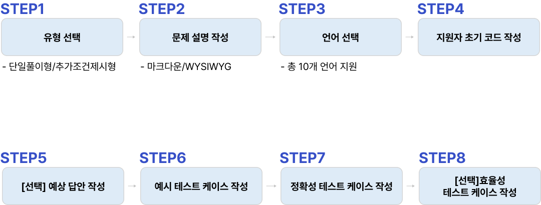 - 문제는 단일 풀이형과 추가 조건 제시형 두 가지 유형으로 구성할 수 있으며, 기본 제공되는 문제풀을 활용하거나 필요한 경우 직접 제작하여 출제할 수 있습니다.