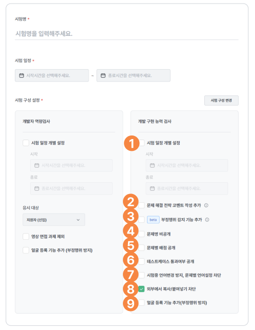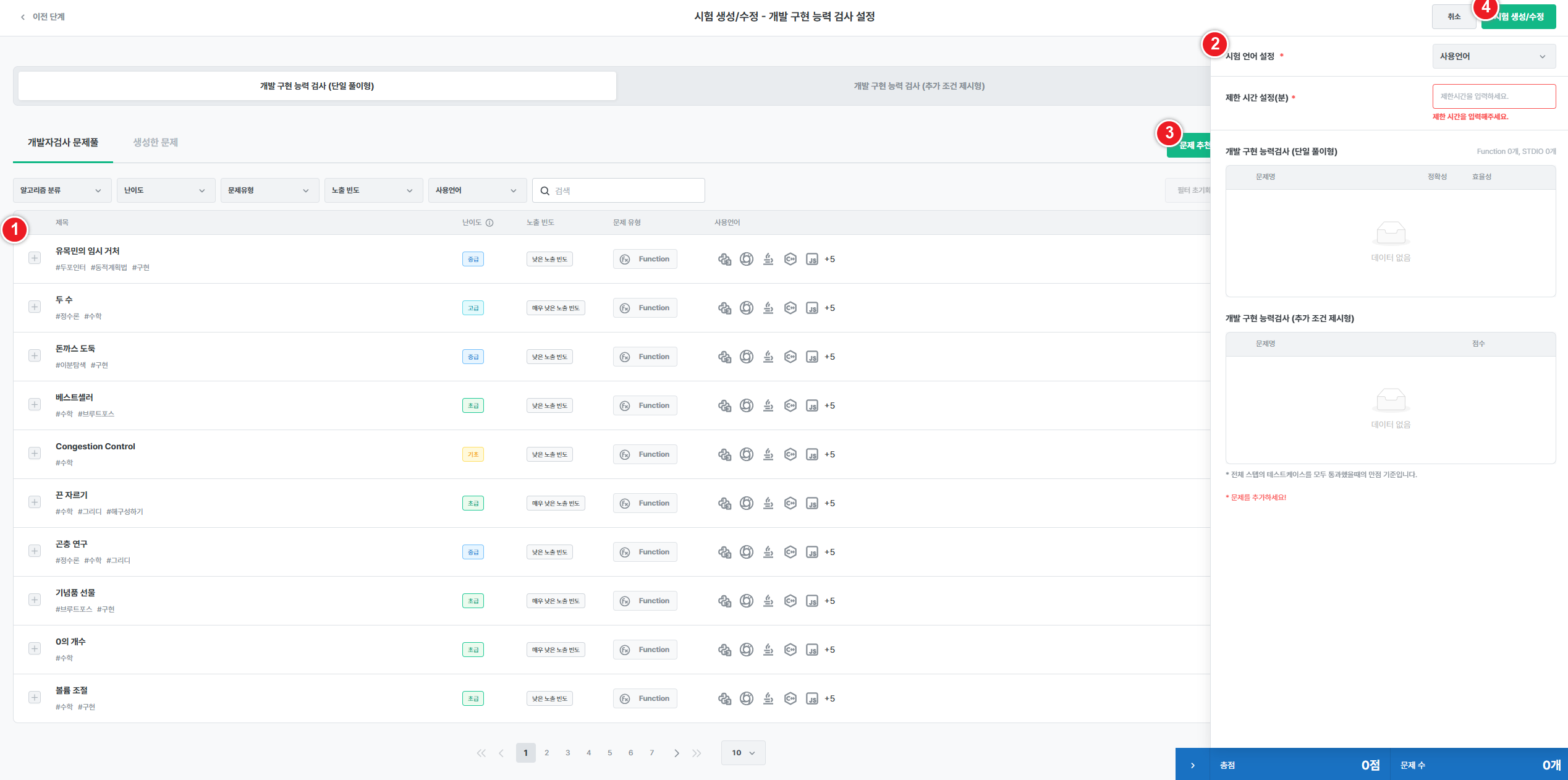 02 시험 생성/수정 - 개발자 역량검사 상세 설정