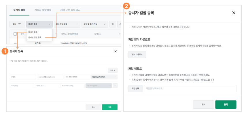 - 작성한 파일을 다시 업로드하면 응시자를 한 번에 등록할 수 있습니다.