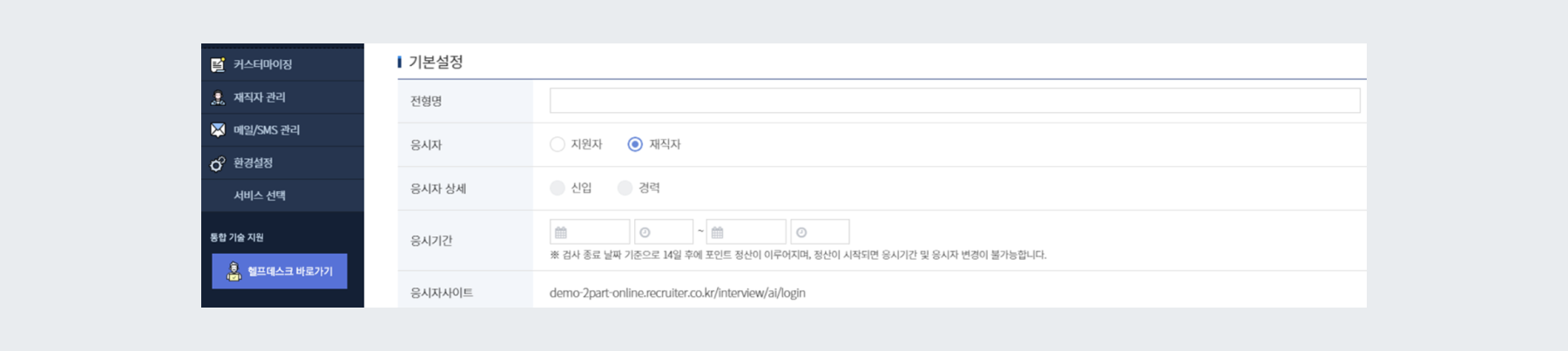 2️⃣ 응시자를 지원자가 아닌 재직자로 선택하시고 검사를 개설해주세요.